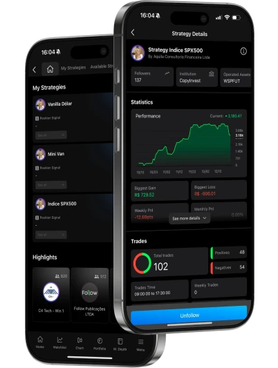 A Plataforma Profissional que replica operações com alta taxa de acerto diretamente na sua conta.